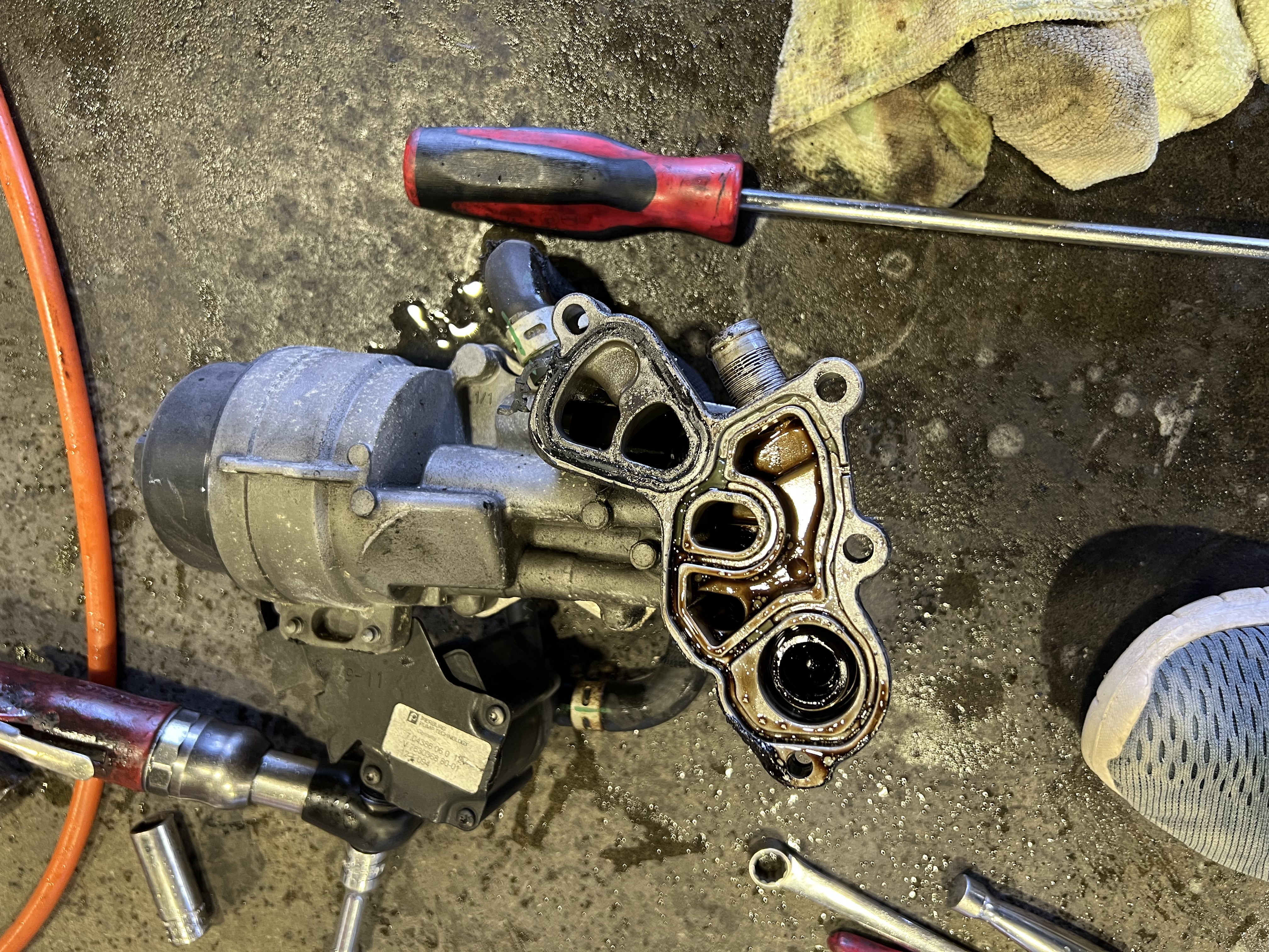 クロスオーバーのクーラントが減る、調べた結果オイルクーラーパッキンからの漏れ