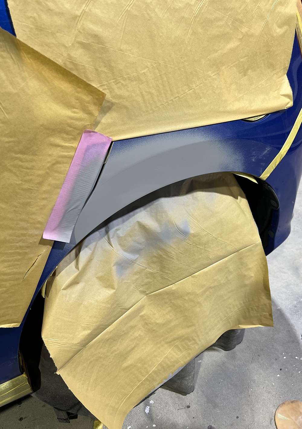 この前から修理してたレビンの半塗装、やっとサフェーサー完了です。