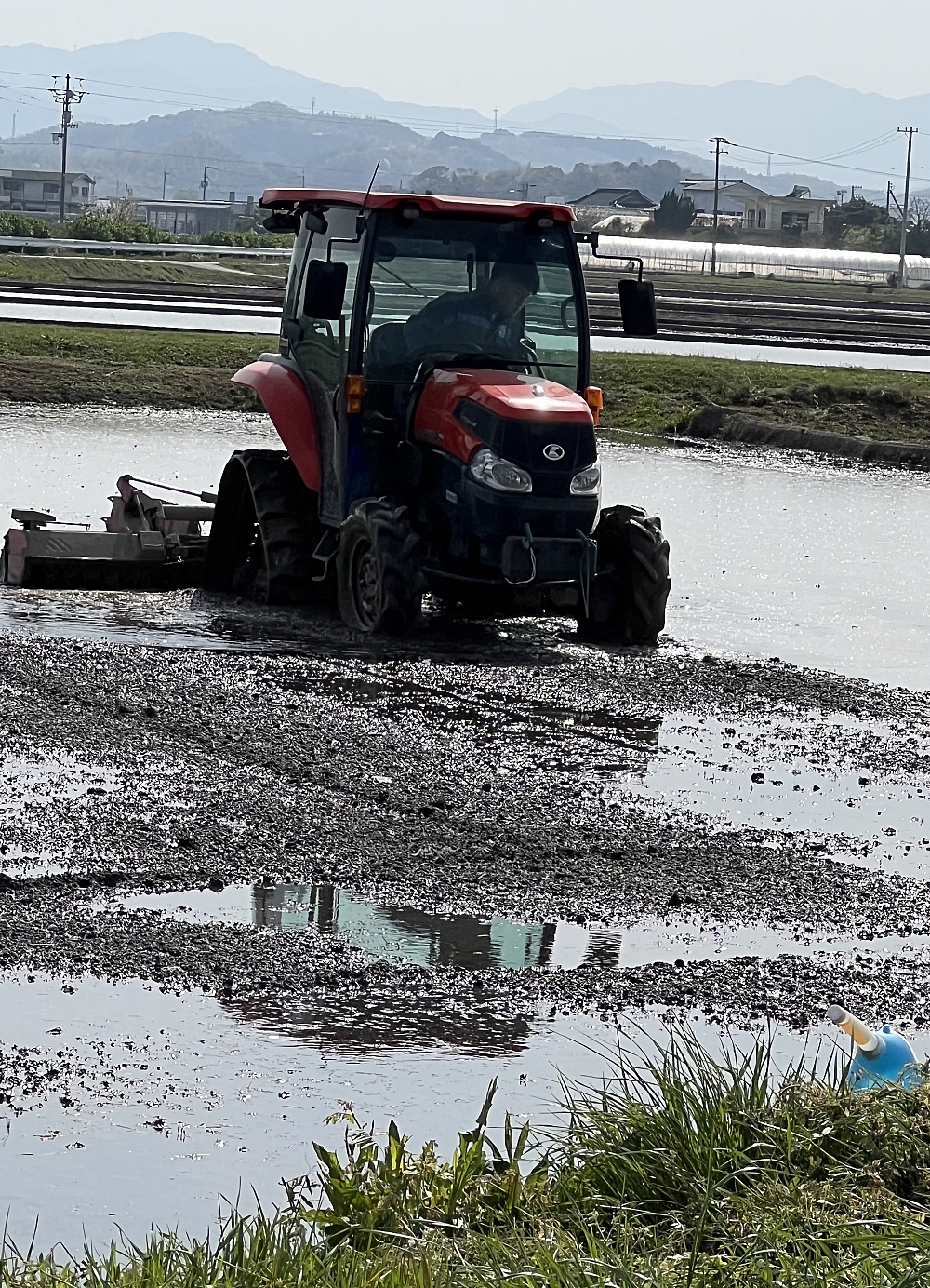 4月から田んぼの代かきを、息子が名古屋から帰って来てやってます。