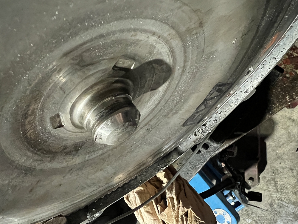 降ろしてミッションと分離しました、ドライブプレートの破損とトルコンのシャフトの摩耗が確認されました。