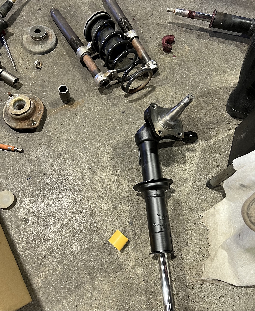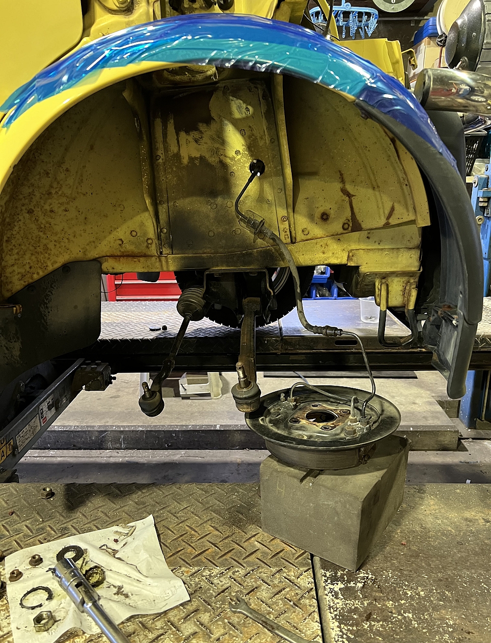 ブレーキを踏むとガタガタ音が聞こえるのでみて欲しい、との事で確認してみたらフロントベアリングがバラバラでネジ山が潰れている!