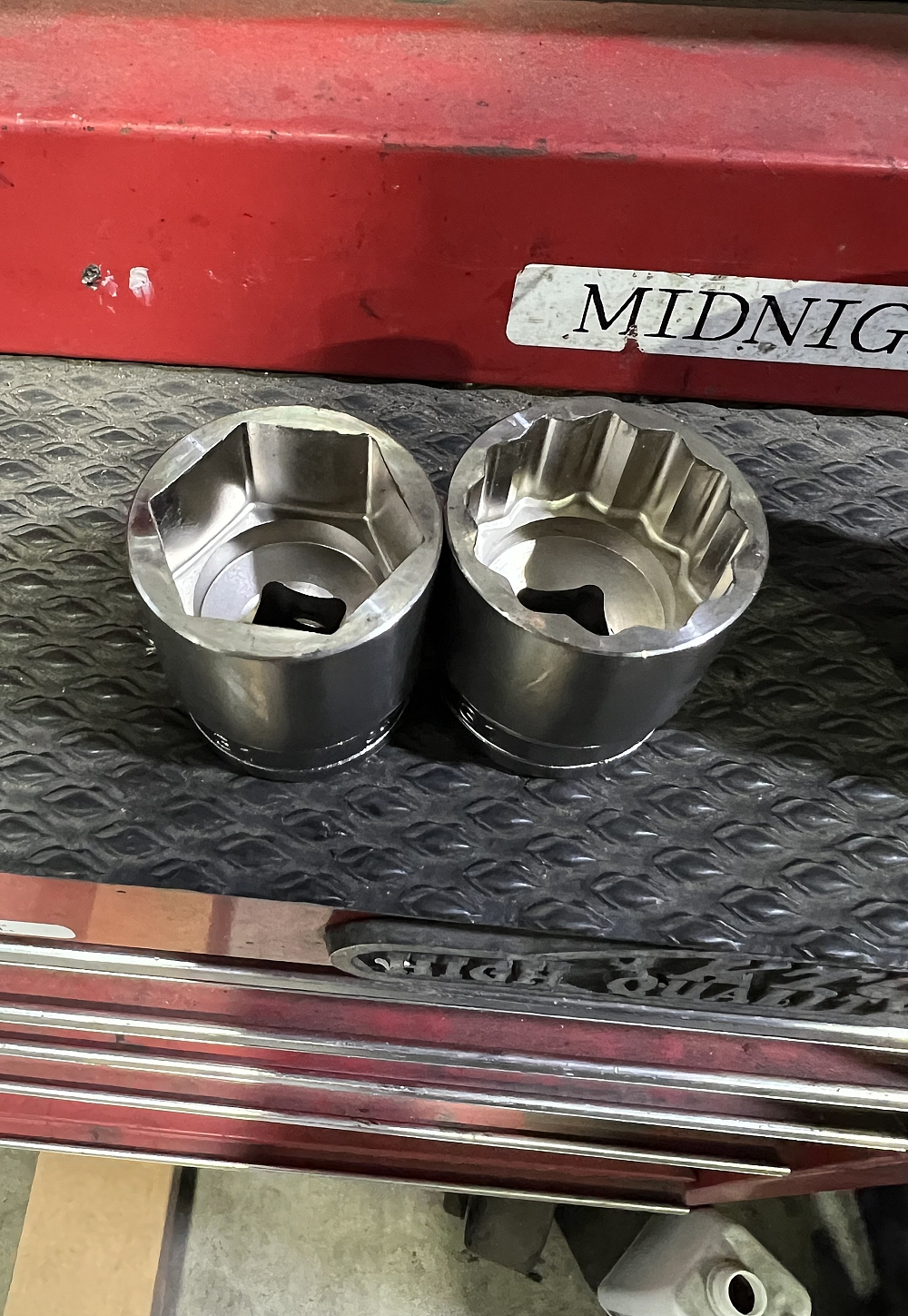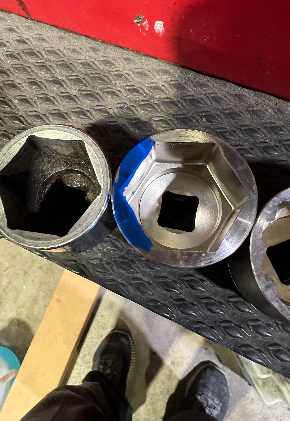 31ミリのソケットを買ったのですが、ボックスの直径が大きいので、親戚の旋盤屋さんに頼んで1mm削りソケット面を無くしました。