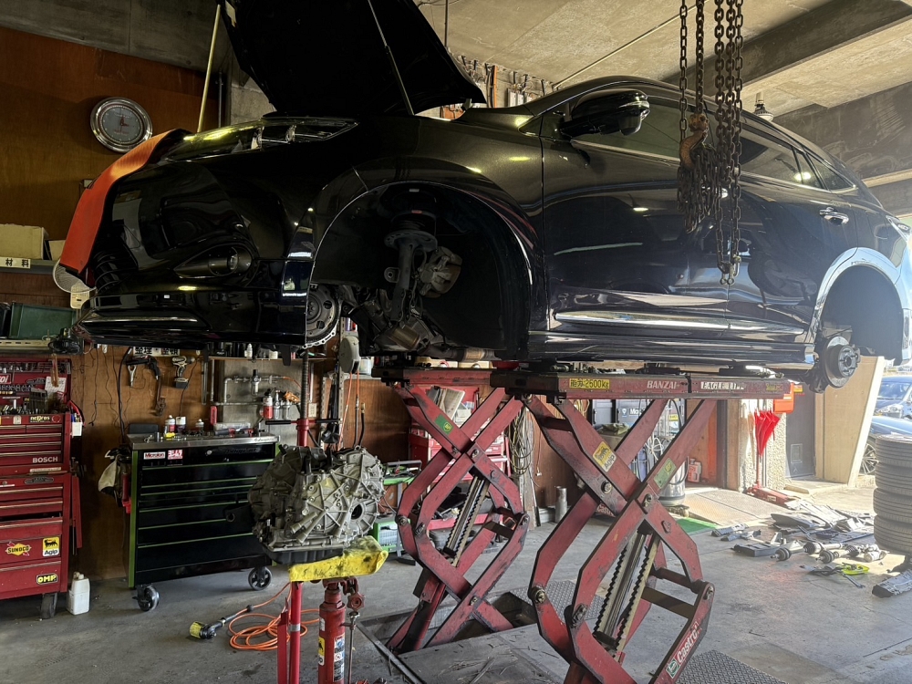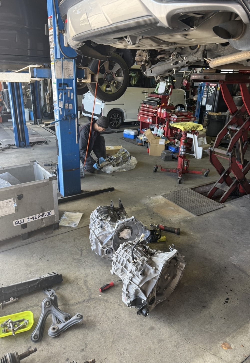 会社は仕事してます、ミッション載せ替え2台です♪
