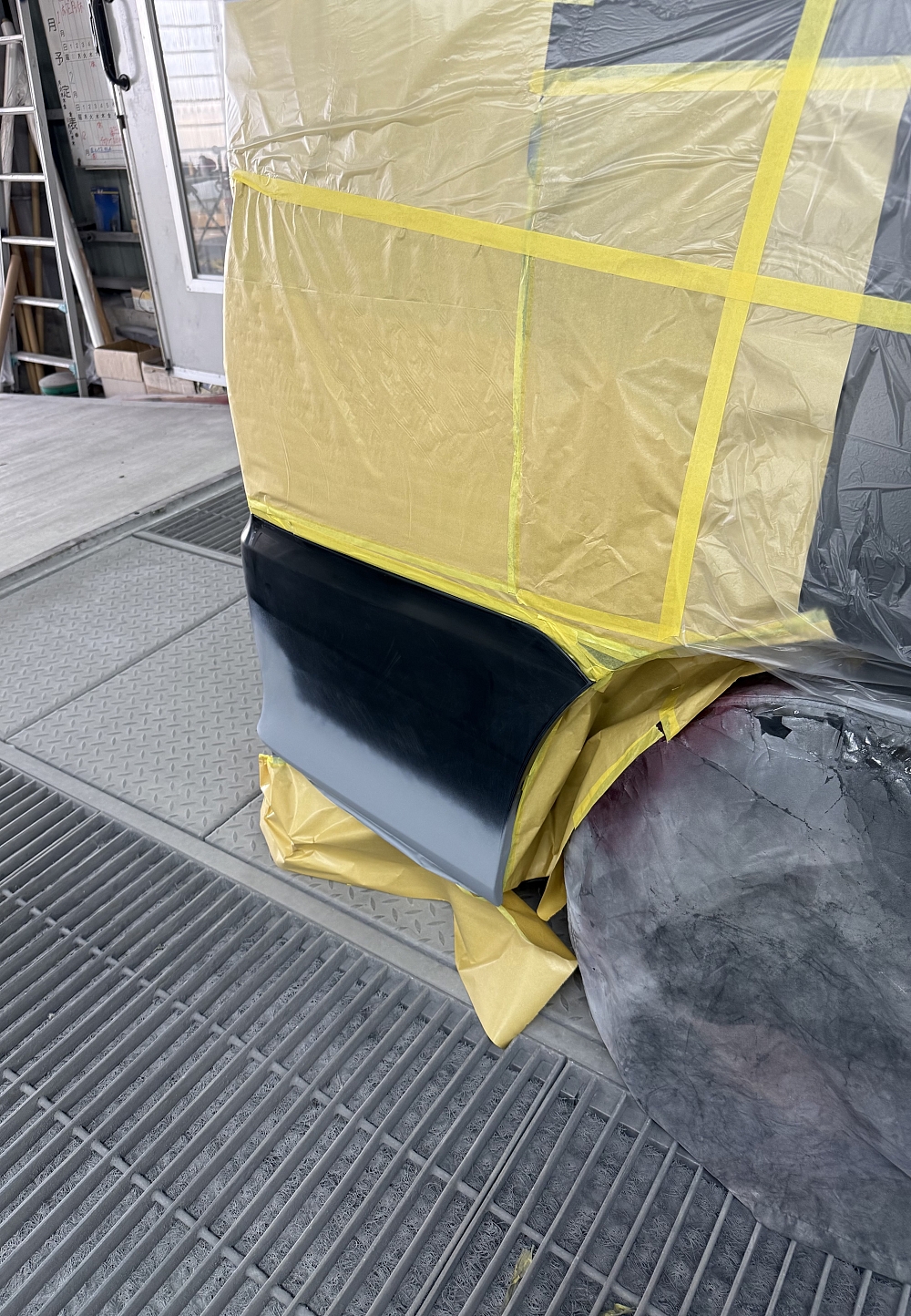 フェンダーの下側にはブツブツの仕上げが必要なので下地作りをしました