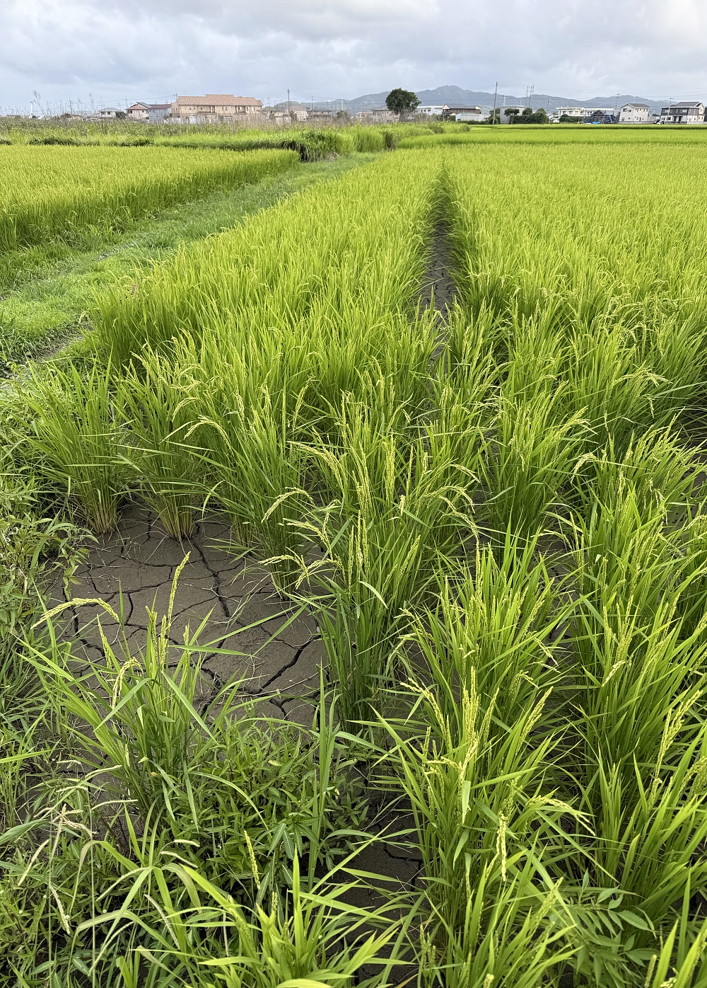 昨日はかなり雨が降ったけどこの田んぼは水がなくなってる