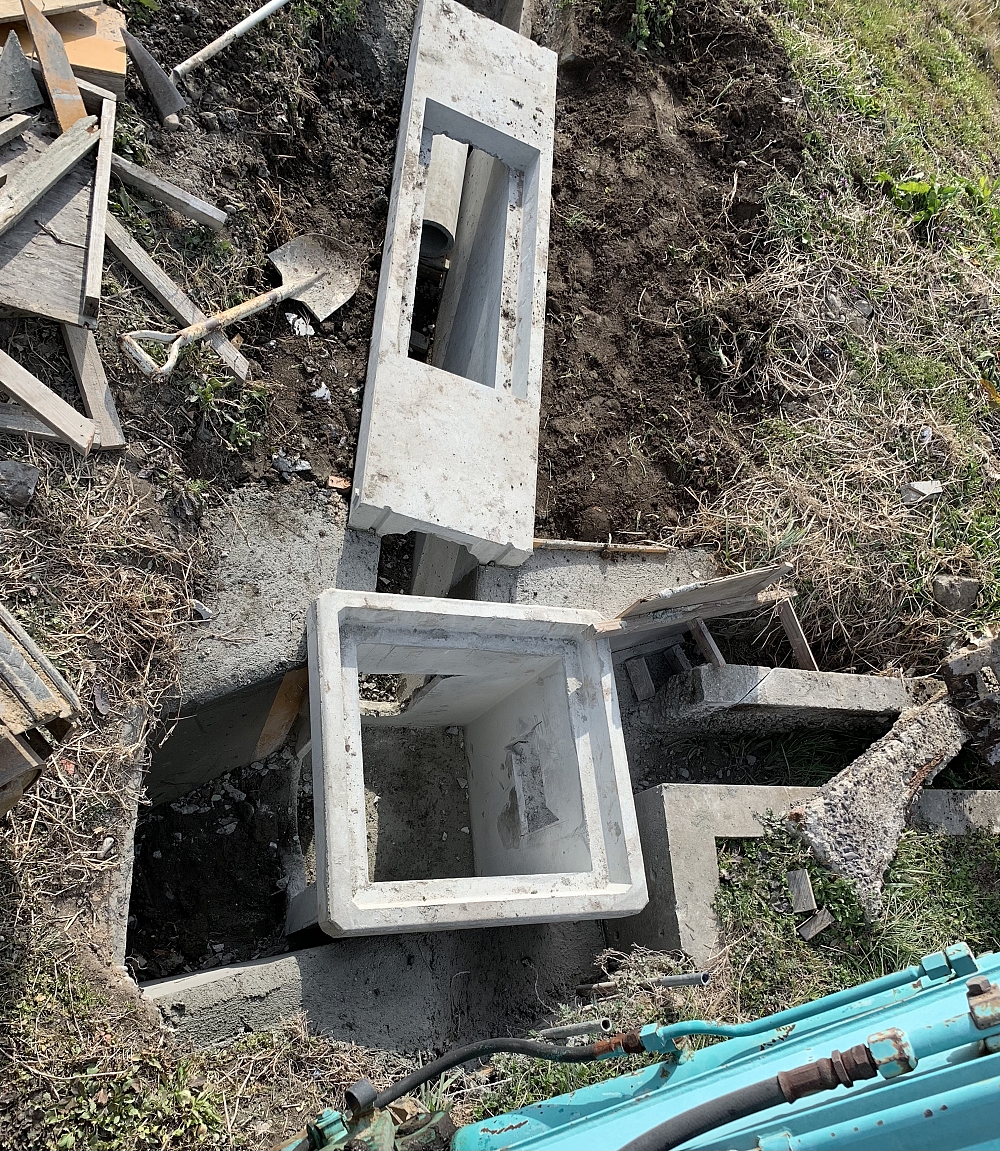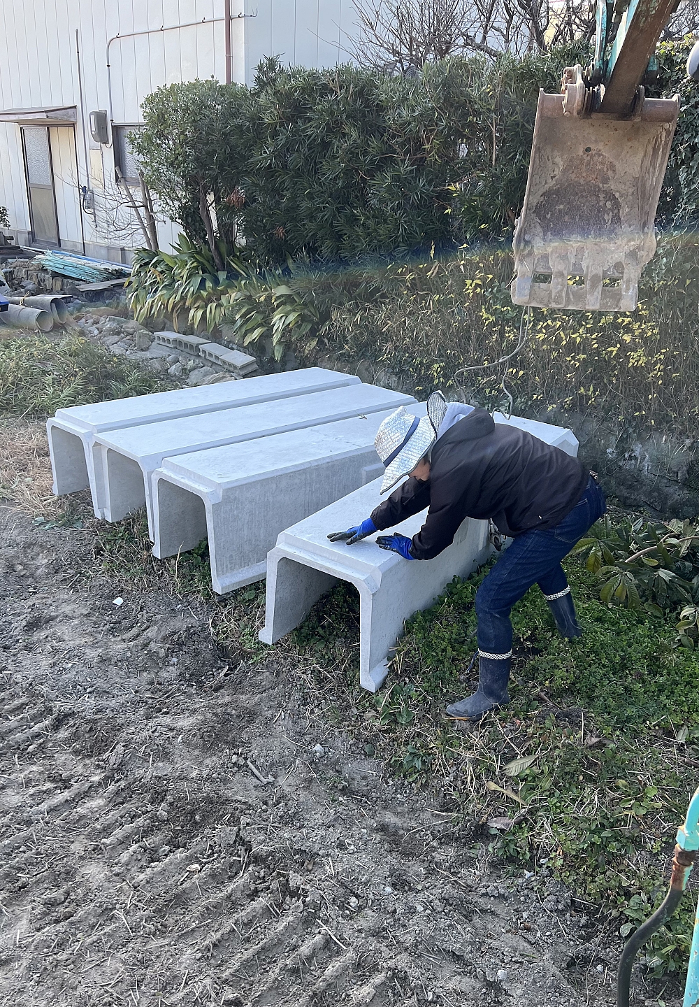 近所の排水路工事をやっています。