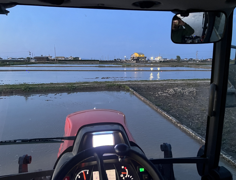 朝から夜まで代掻きしてます息子は田植え機で植え付けてます。