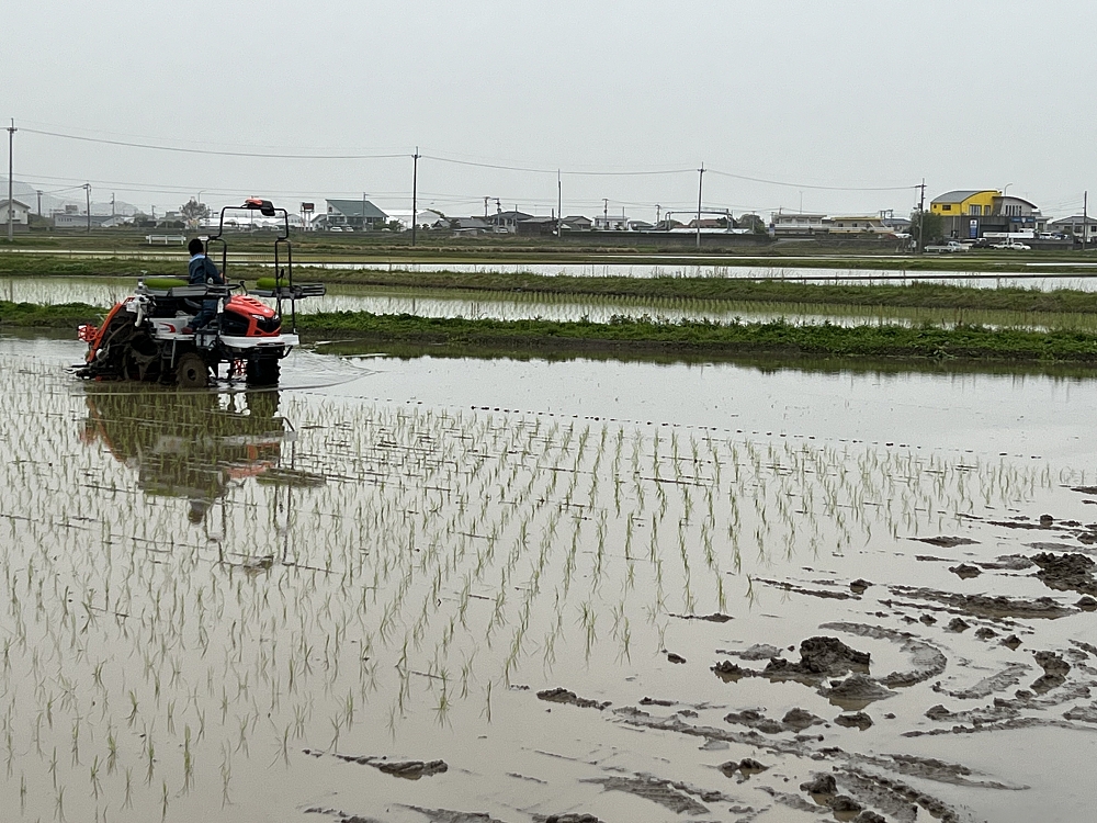 あと3日位で田植えは終わる予定です、特別栽培米を11町(1100a)栽培しています。