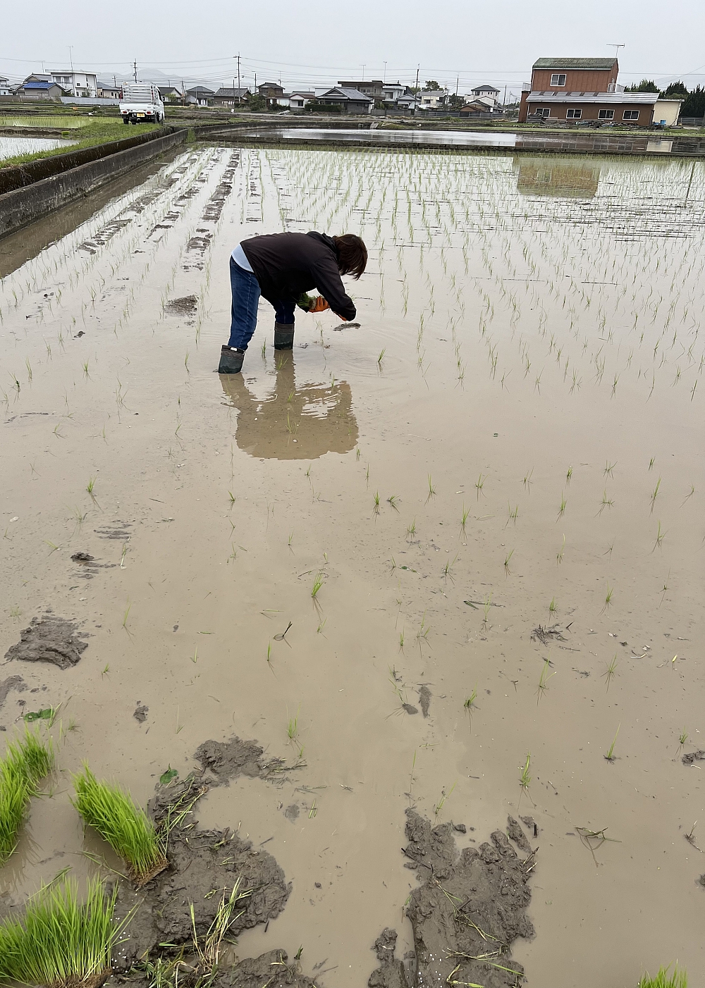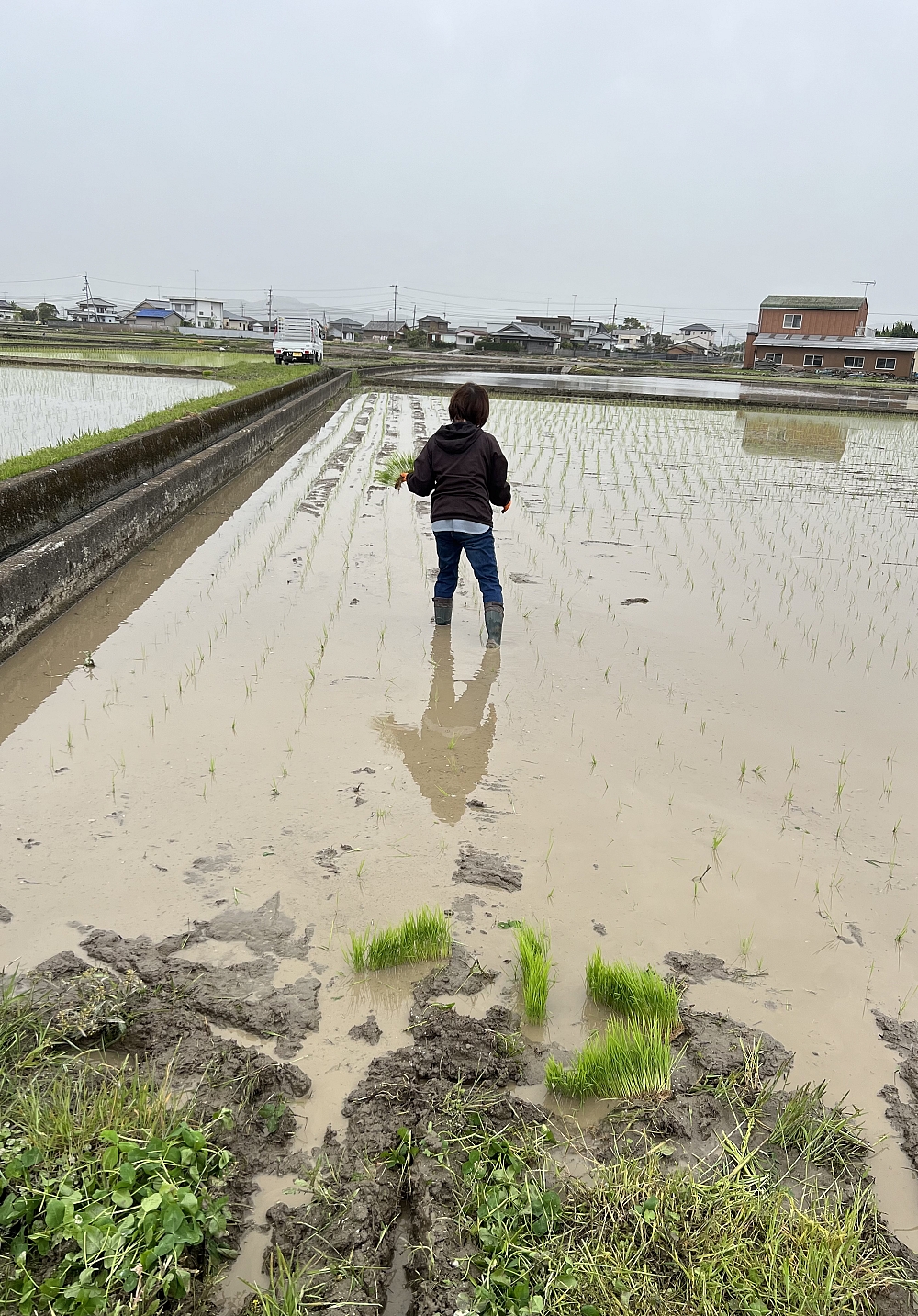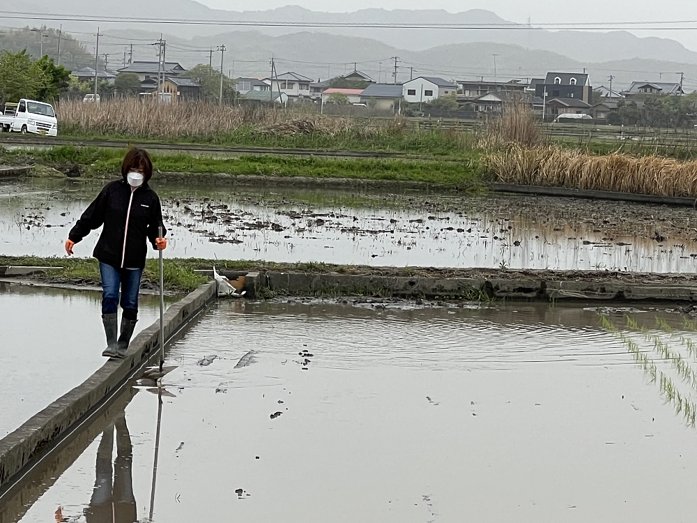 田植えが終わって、植え残しを無くすために苗を差します