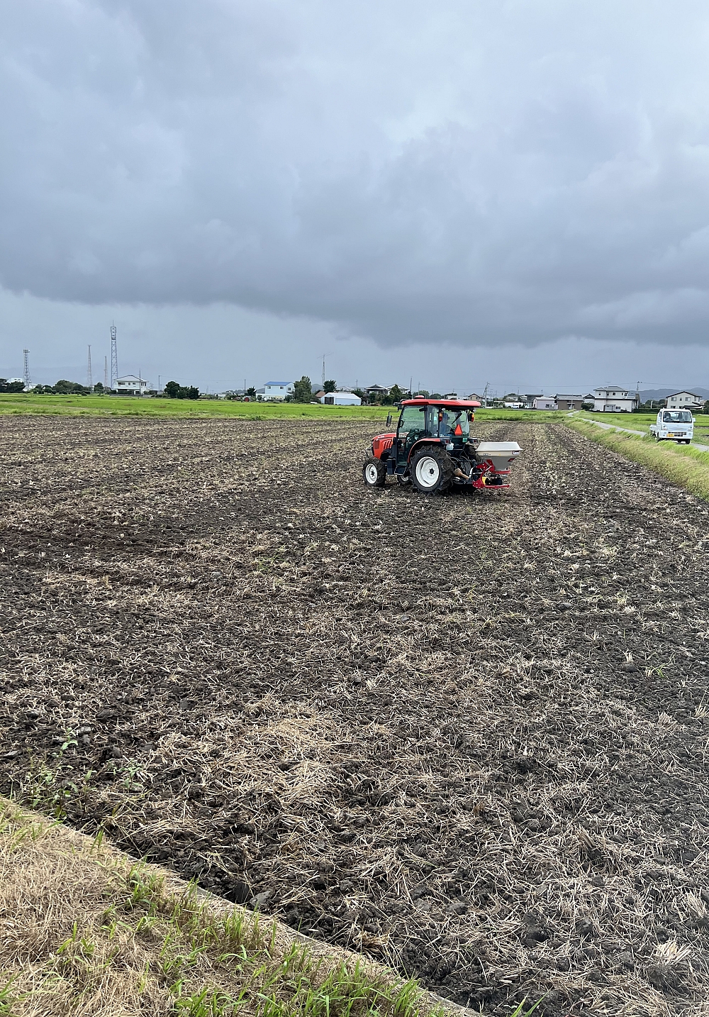 小雨の中、有機肥料を散布しました(ペレット、水酸化マグネシウム)この後マリンエースを撒いて引き込みます