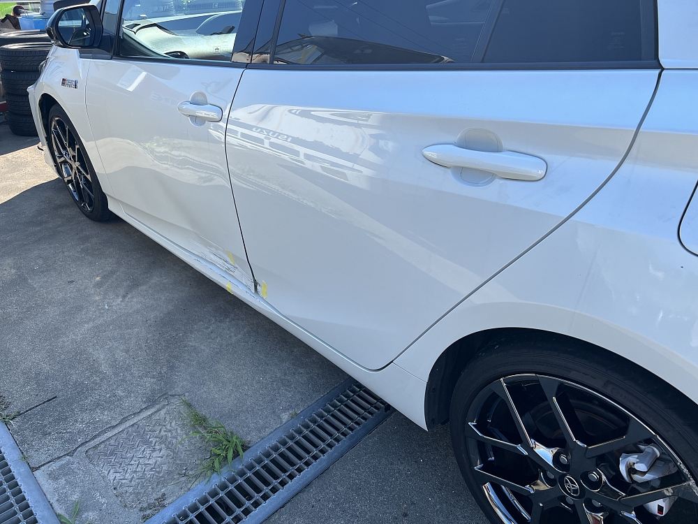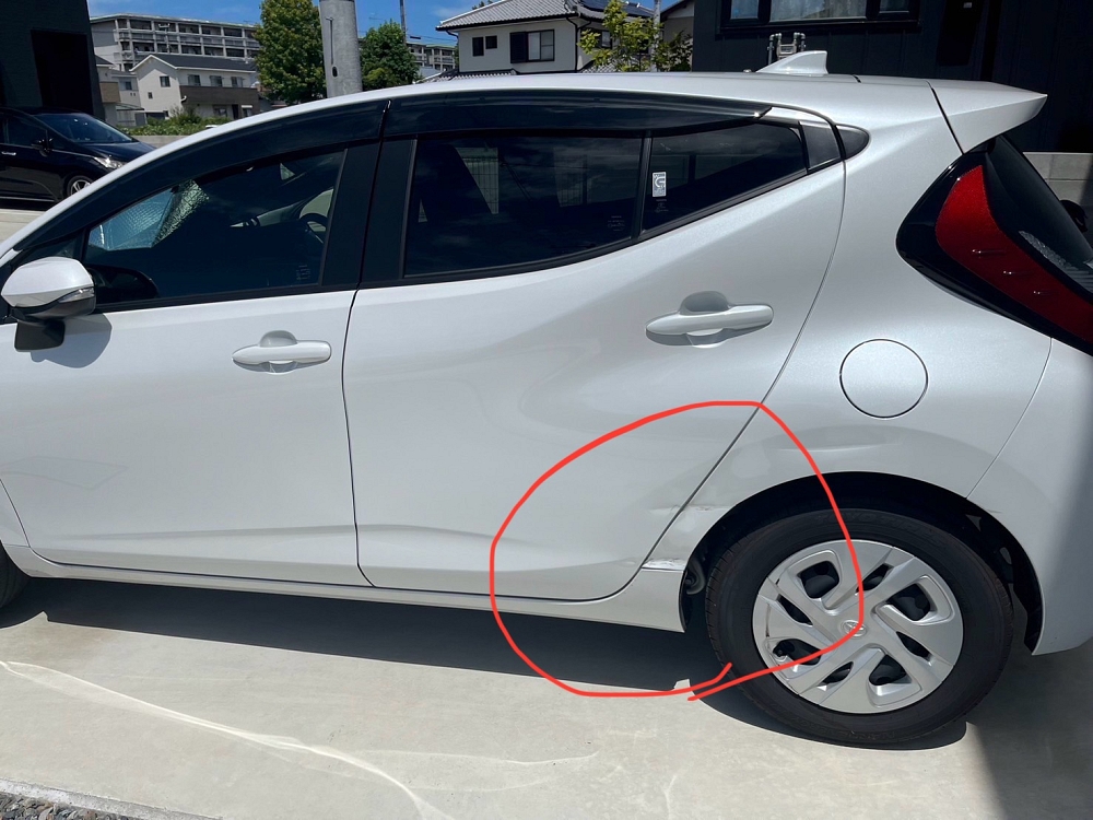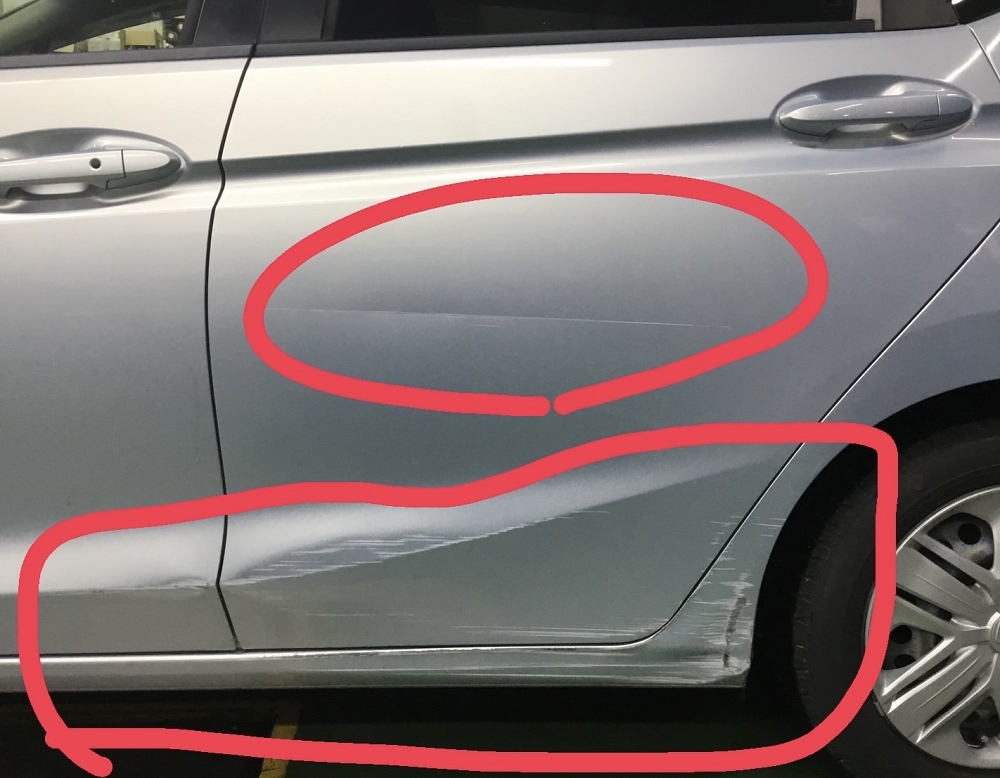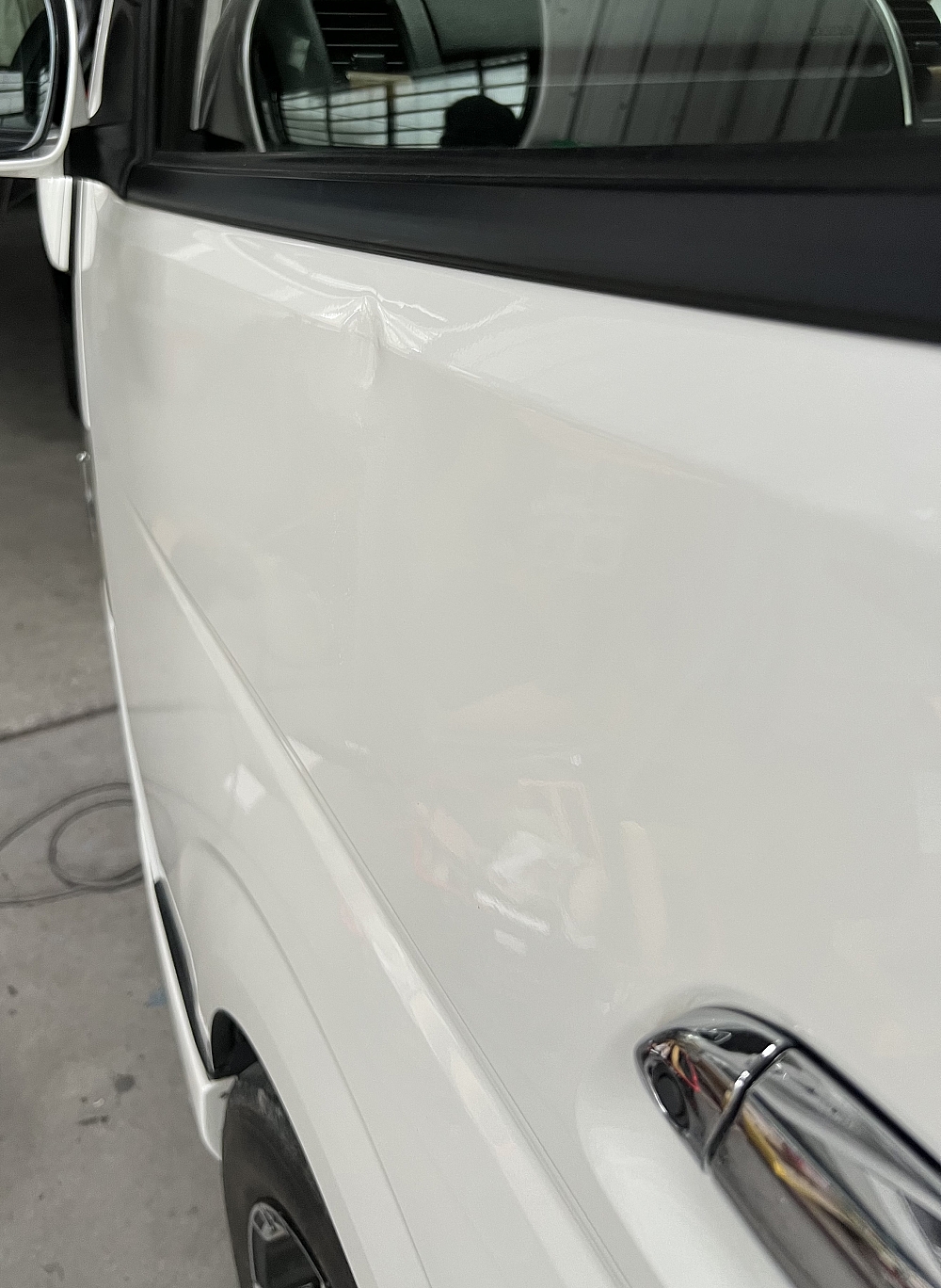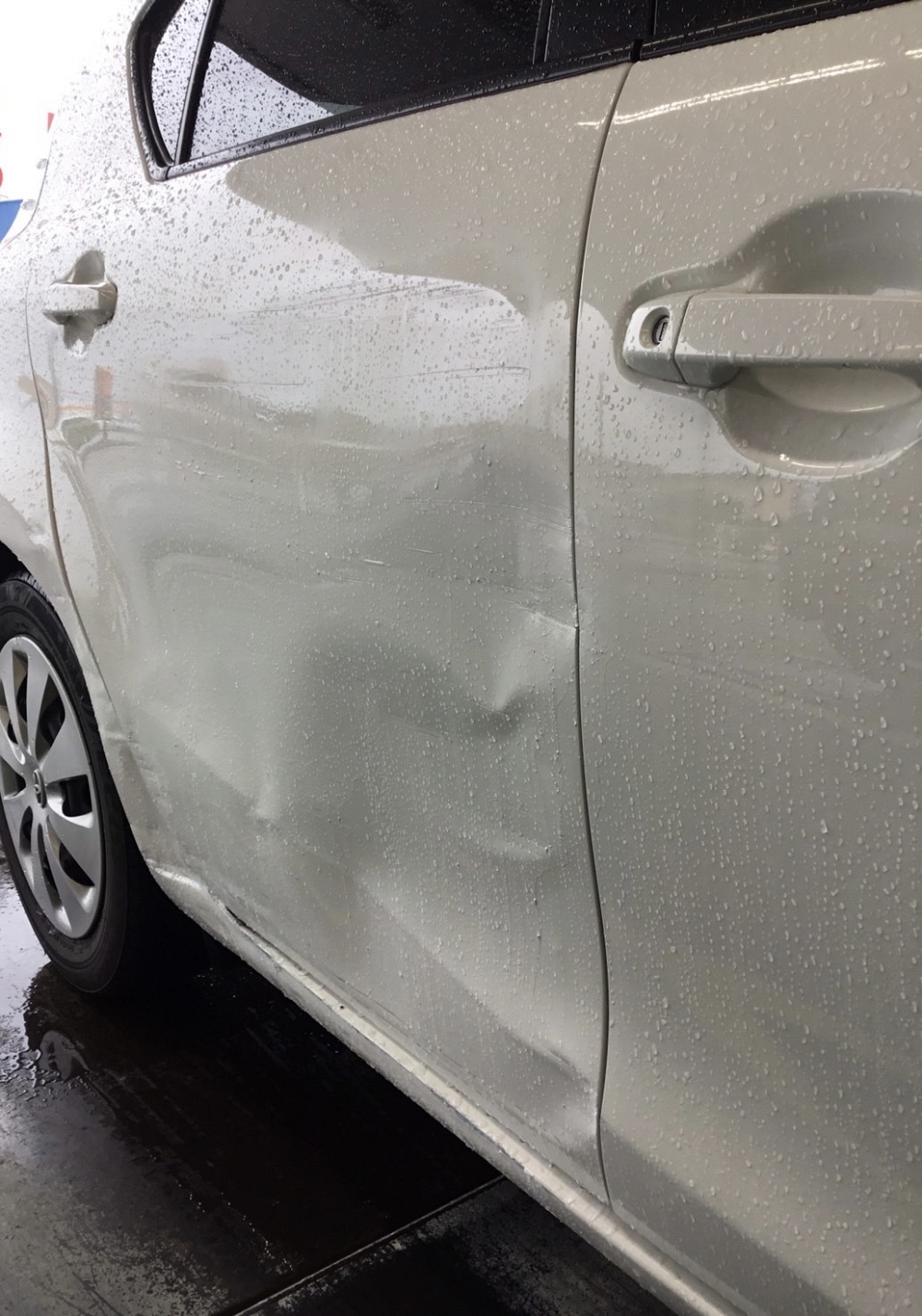 ● ドアの内側まで凹んでいます、クラウンのリヤドアも...