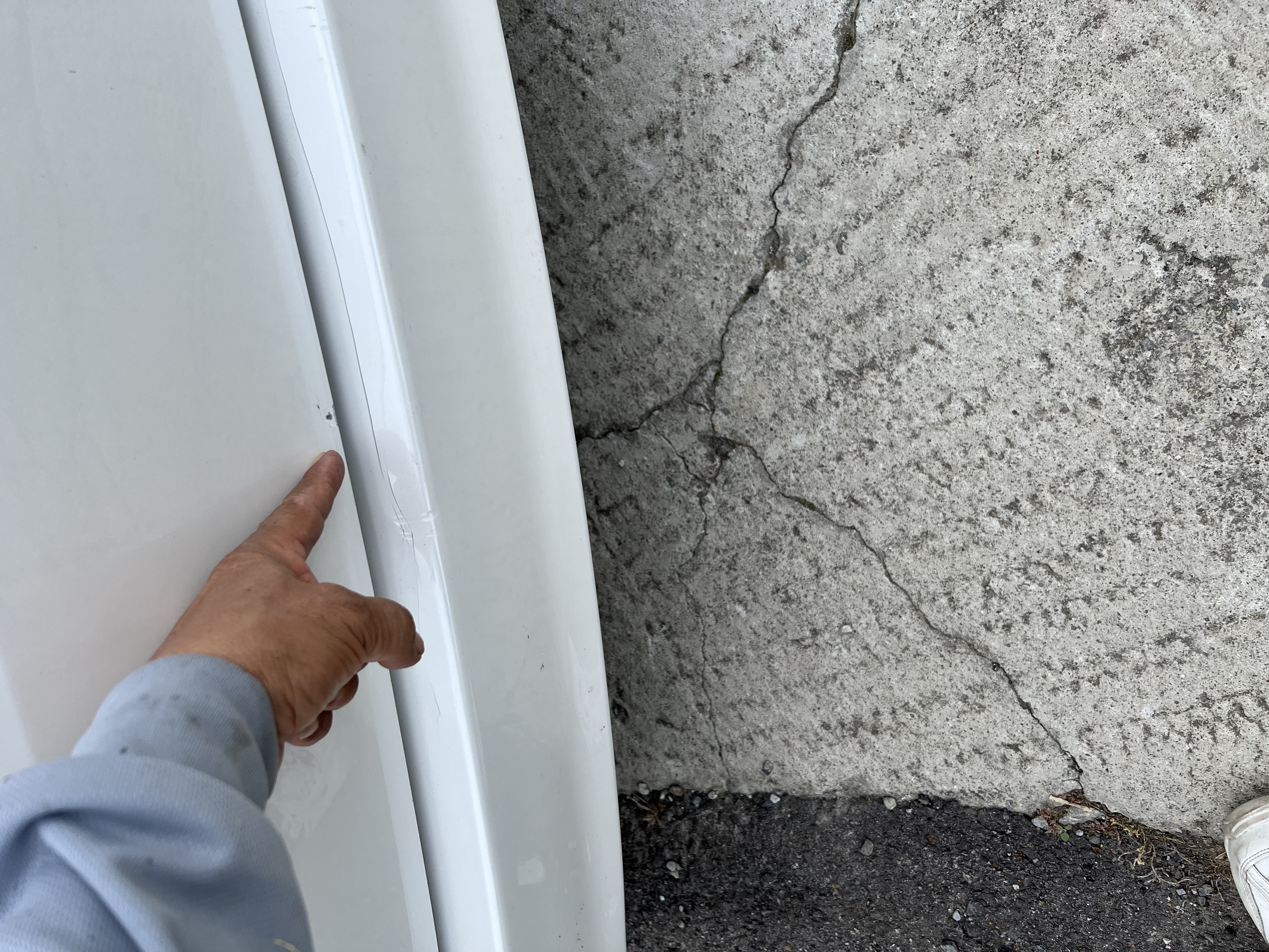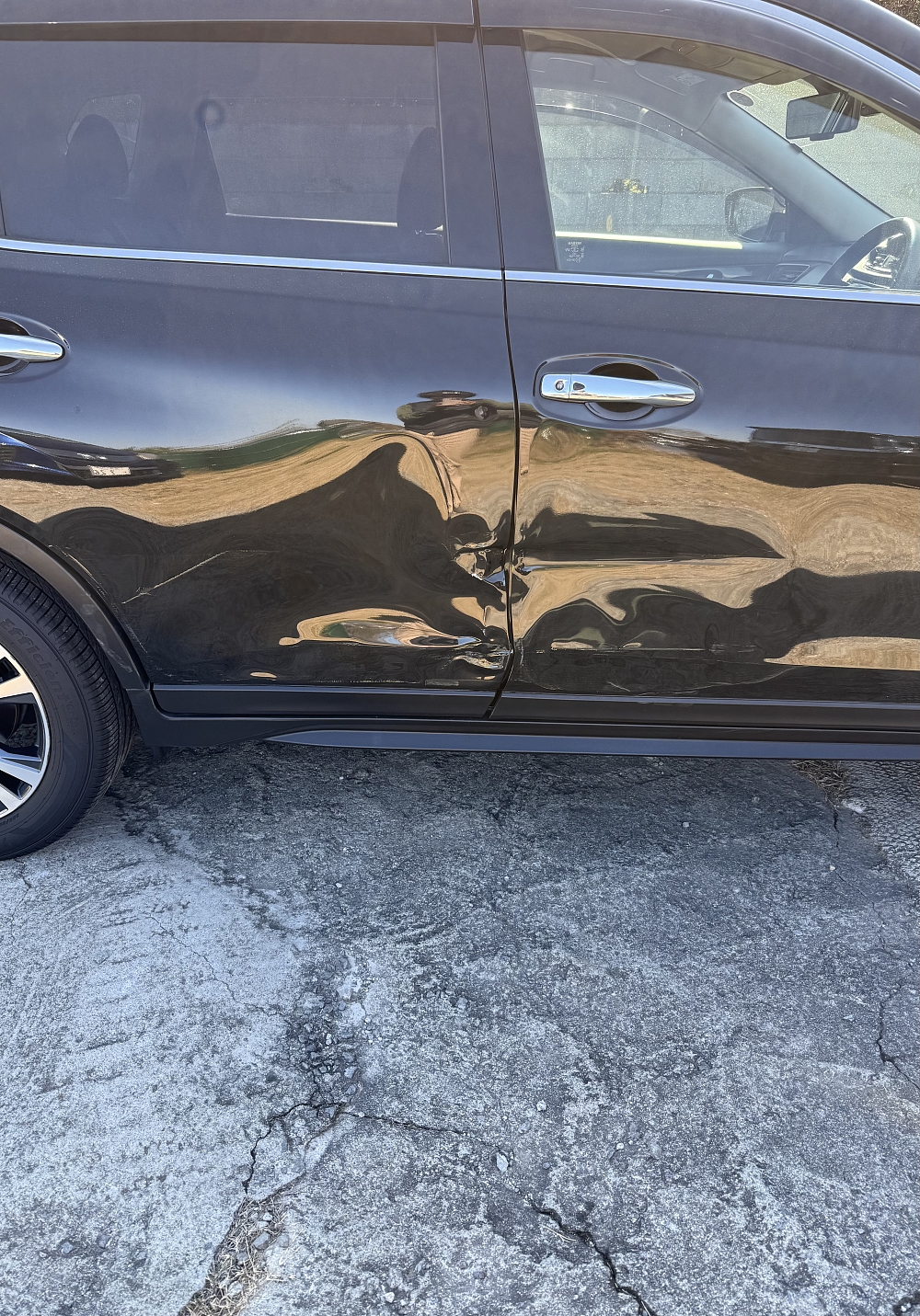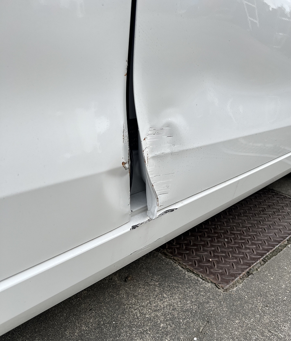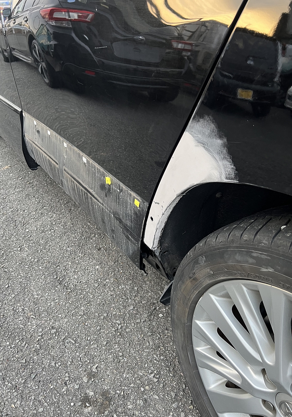 ● ドアの内側まで凹んでいます、クラウンのリヤドアも...