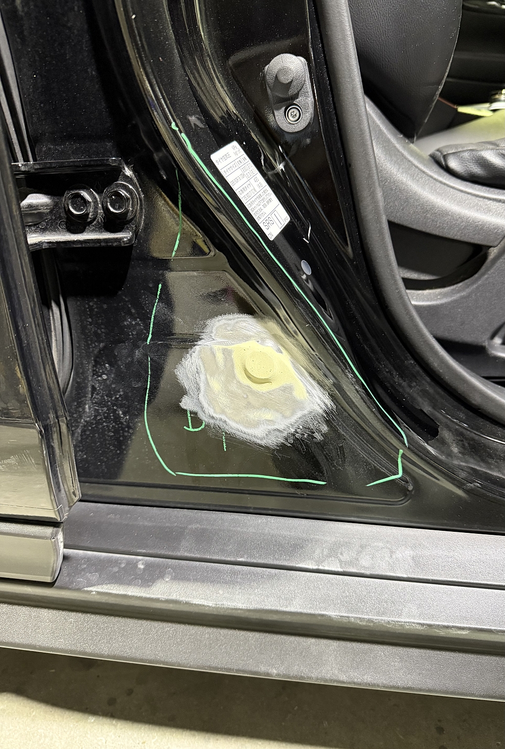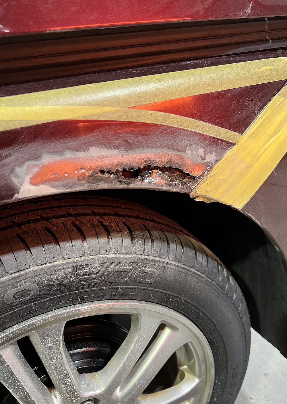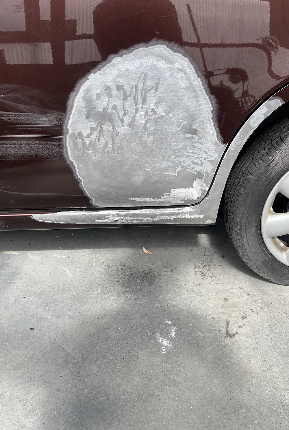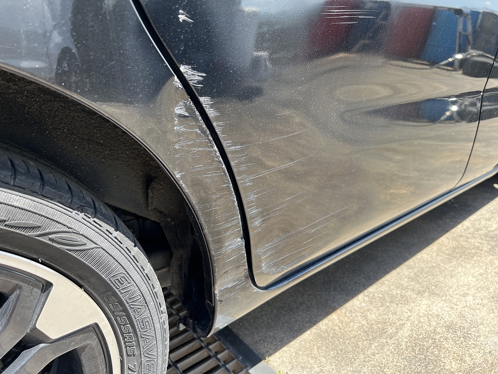 ● ドアの内側まで凹んでいます、クラウンのリヤドアも...